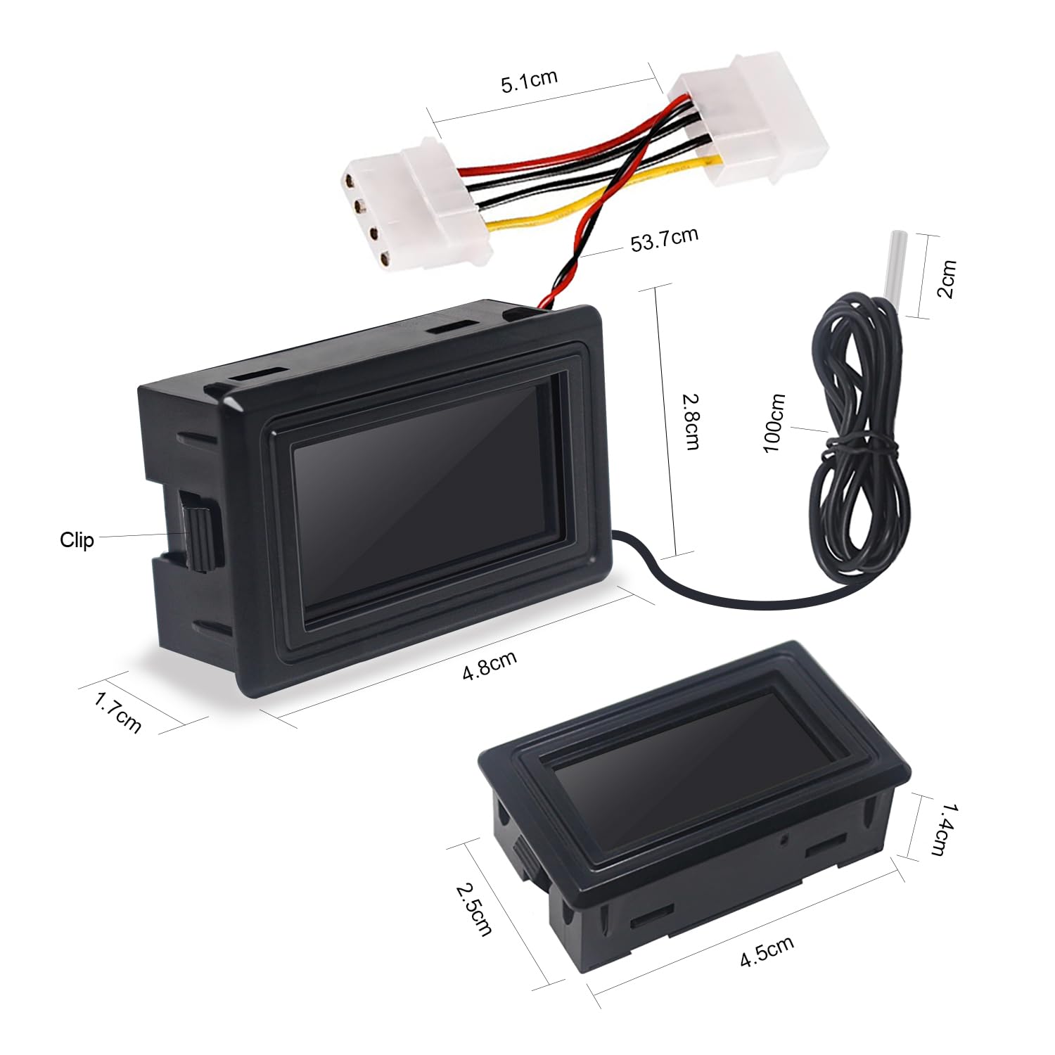 - Accurate and Responsive】Temperature Measurement Range: -58°F~230°F /-50°C~110°C. Sensitivity: ±0.05s. Accuracy: ±0.5°F/±0.5°C. Working Voltage: DC 4~25V. Sensor cable: 1 meter, Temperature display unit: °C/°F Convertable.