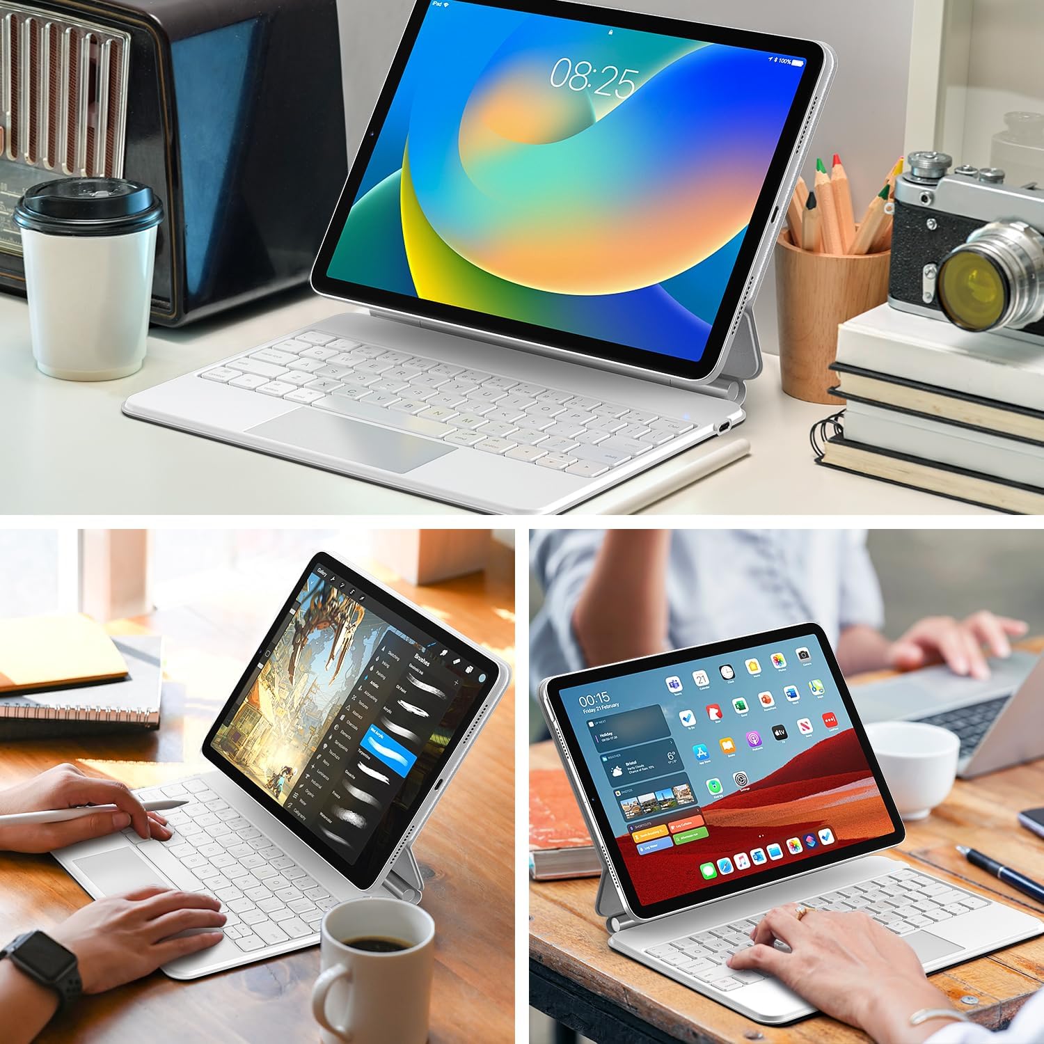 - Easy-Set Magnetic Stand: you can attach your iPad 10th generation to the keyboard back case magnetically, Set the floating cantilever stand with one smooth motion, and transform your iPad into a highly performant and easy-to-use laptop within a second! Which is perfect for traveling, business, and school.