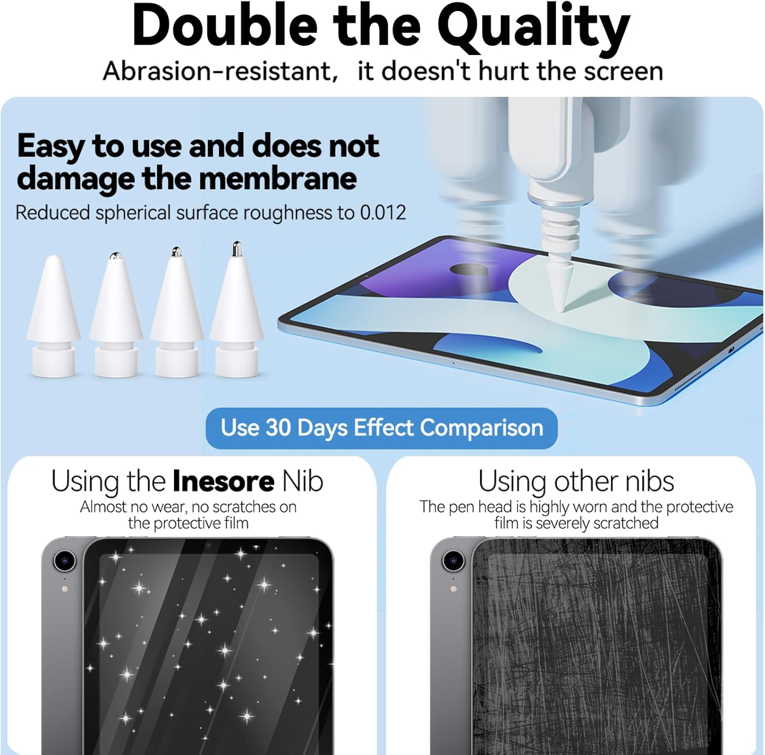 - 【COMPATIBILITY】:Inesore Upgraded Apple Pencil Tips for iPad Pro /Apple Pencil Pro/Apple Pencil 1st Generation/Apple Pencil 2nd Generation/Apple Pencil USB-C.