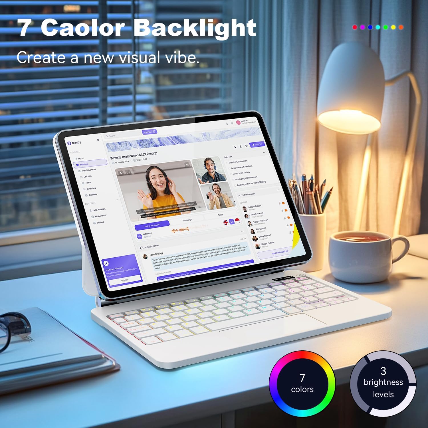 - 7-Color Backlit Keyboard Case for iPad 11th/10th Gen:From dawn to dusk, adapt effortlessly! Adjusting 7 backlight and 3 levels of brightness ensures clear visuals in every setting, enhancing your immersive experience.