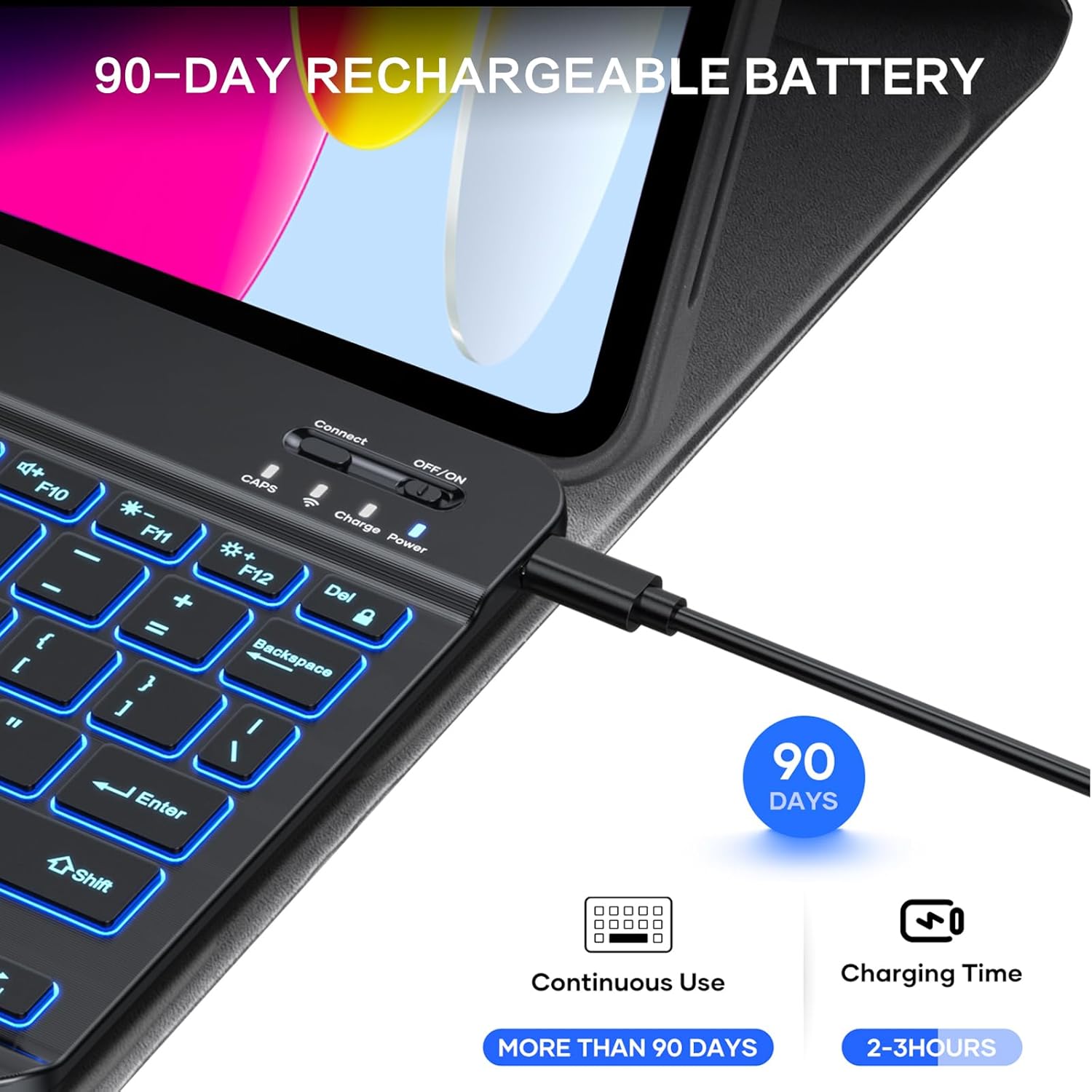 Keyboard Case for iPad (A16) 11-inch 2025/10.9 inch 10th Gen 2022, iPad 11th/10th Generation Case with Keyboard, Built-in Pencil Holder, Wireless Backlit Detachable