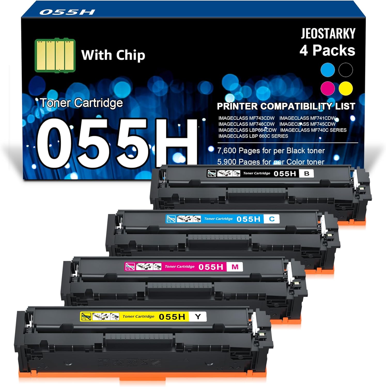- Package Contents: 1 x toner 055h black, 1 x toner 055h cyan, 1 x toner 055h magenta, 1 x toner 055h high capacity yellow