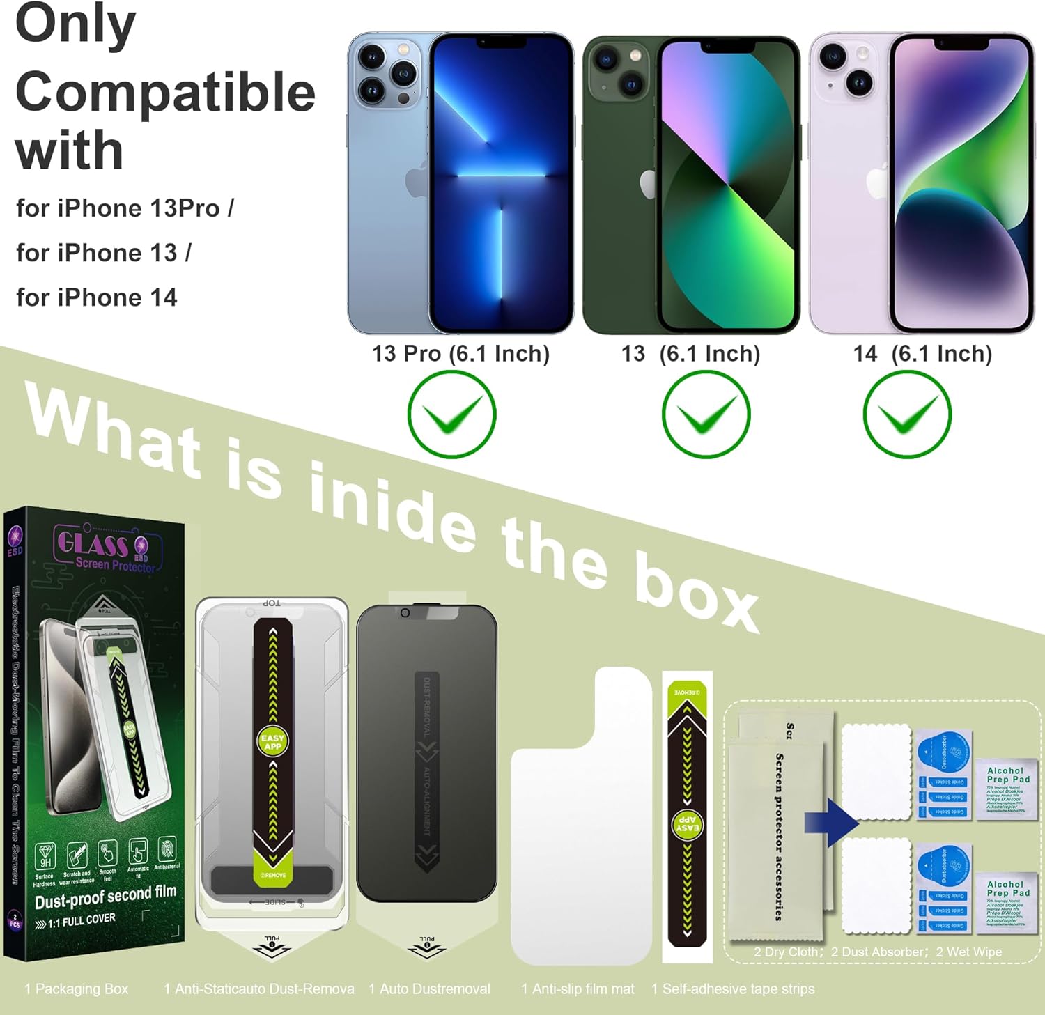 (2-Pack Anti-Spy Privacy Screen Protector for iPhone 16e/13/13 Pro/14(6.1-Inch),9H Tempered Glass,Full Coverage,Anti-Fingerprint,Auto Dust Removal,Bubble-Free,Easy Installation