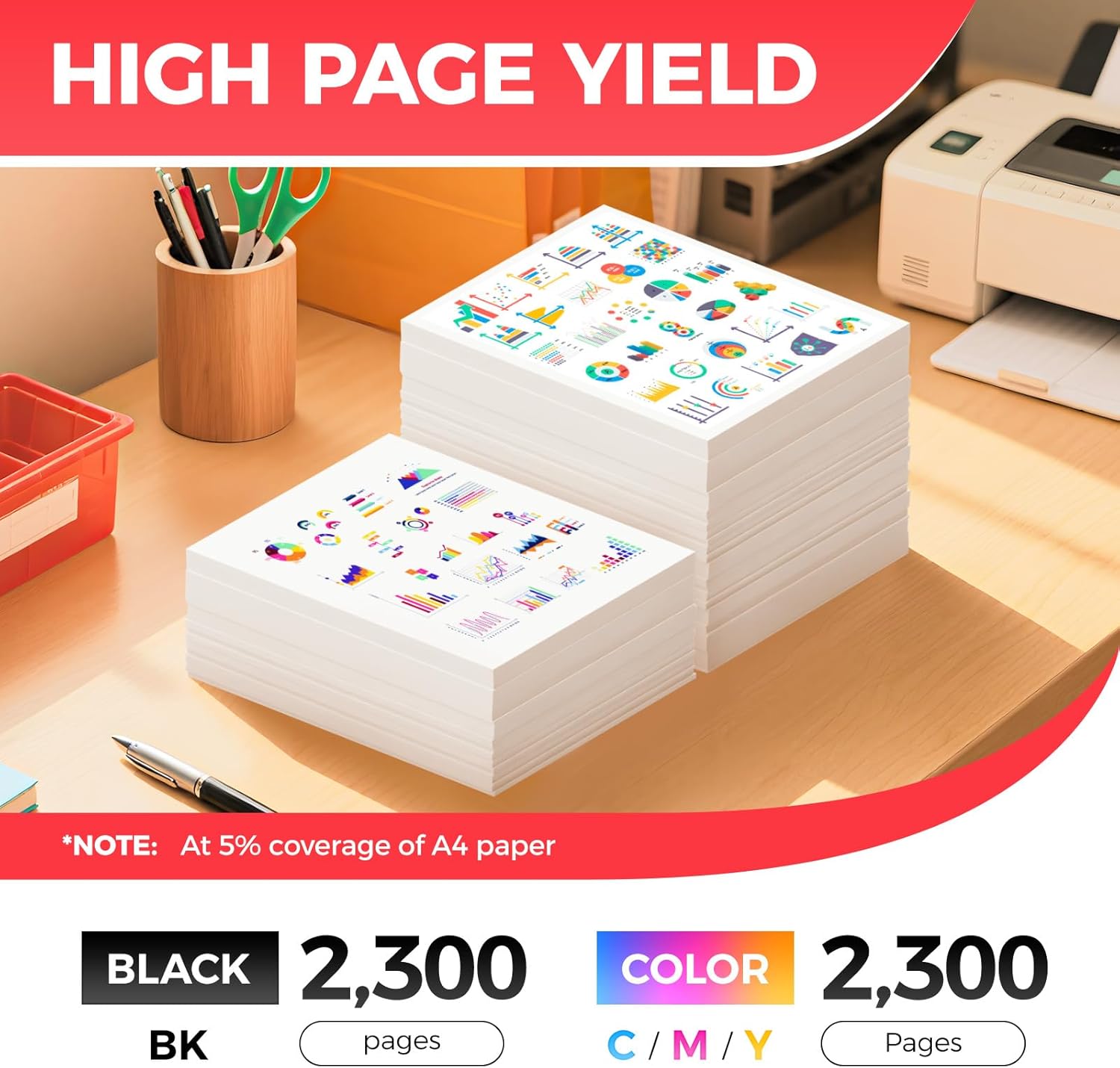 - High-Yield: up to 2,300β¬ pages per 046/046H Black and 2,300 pages per 046/046H Color (Total 9,200 pages, 5% coverage).