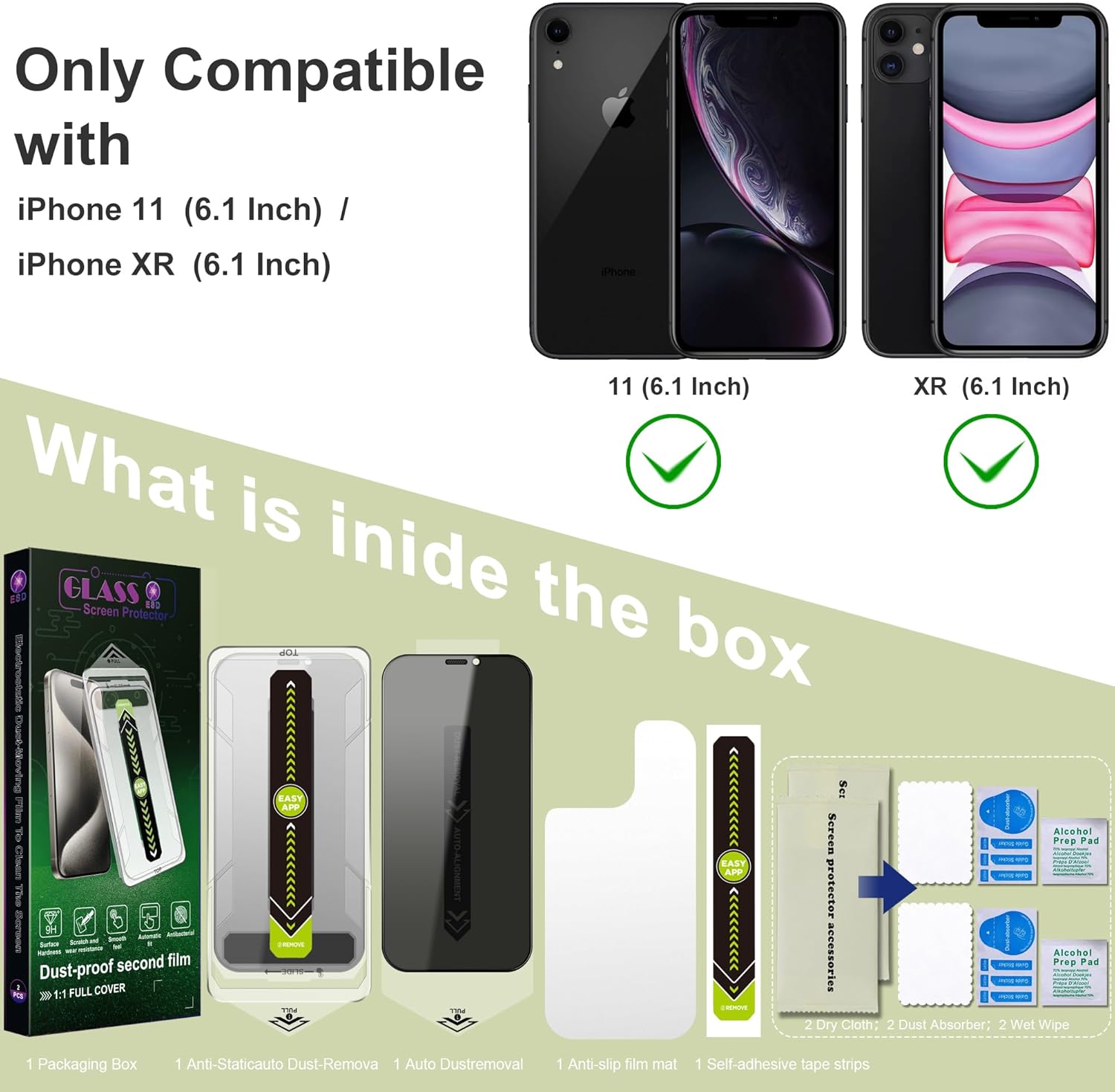 - Auto Dust Removal & Easy Installation: The SY SHANGYAN Anti-Spy Privacy Screen Protector for iPhone 11/XR features advanced auto dust removal and self-aligning technology for a flawless,bubble-free install every time.Just place the frame,pull the tab,and press to push out any air bubbles.Installation is quick,easy,and hassle-free.For best results,watch our step-by-step installation video before applying