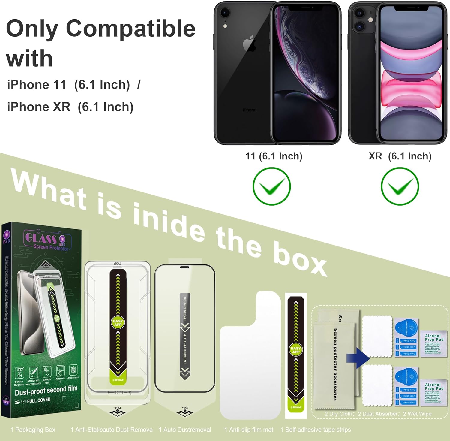 (2-Pack Ultra HD Clear Screen Protector for iPhone 11/XR (6.1-Inch),9H Tempered Glass,Full Coverage,Anti-Fingerprint,Auto Dust Removal,Bubble-Free,Easy Installation