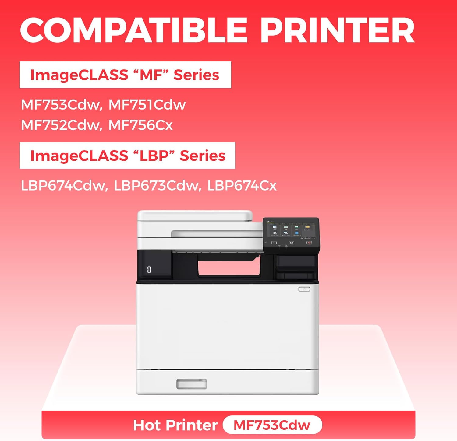 - Compatible Printers: Compatible with Canon Color imageCLASS MF753Cdw, MF751Cdw, MF752Cdw, MF756Cdw, LBP674Cdw, LBP673Cdw, LBP674Cx Printer.