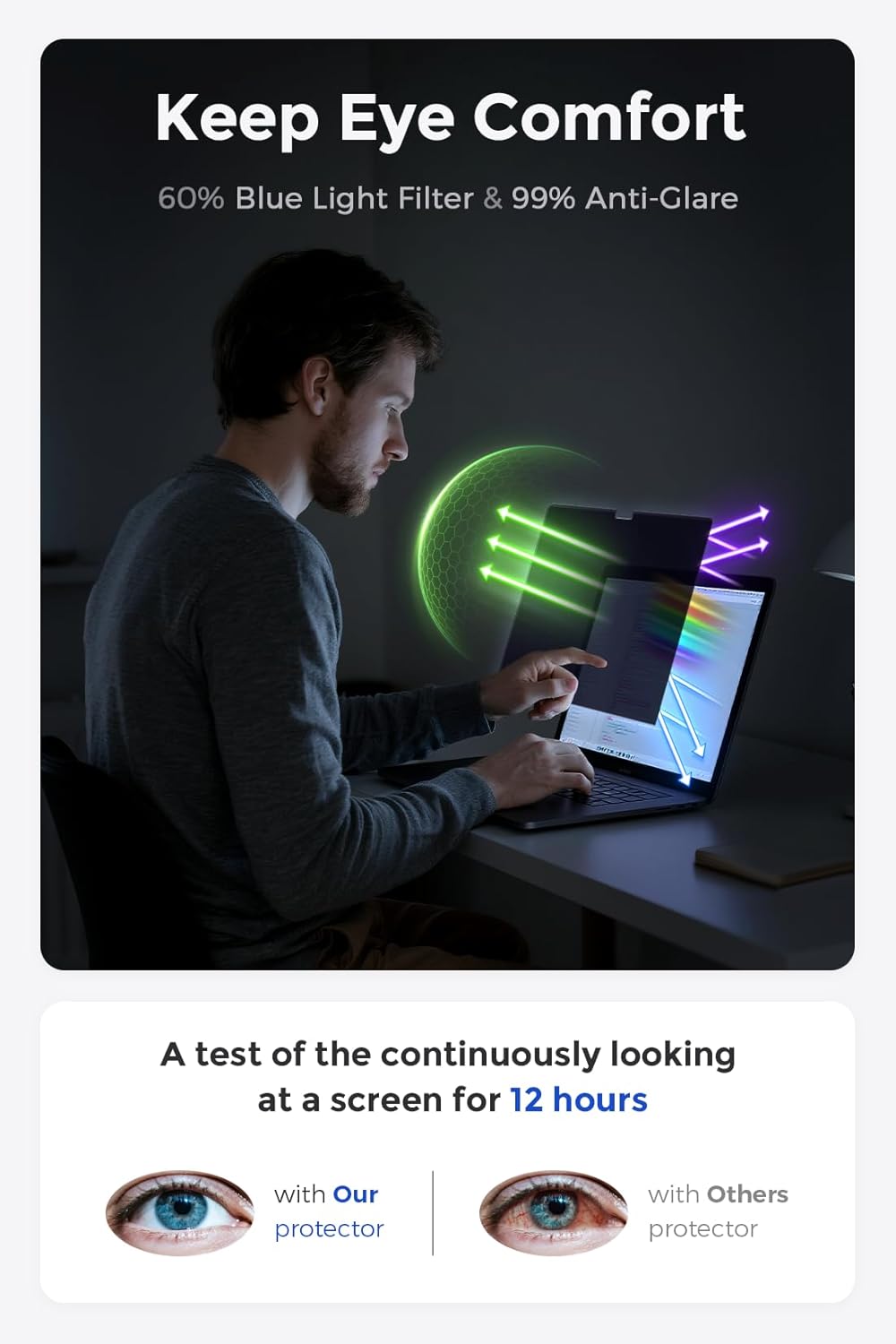 • Exclusive 26° Privacy Angle vs. Industry Standard 30° – Engineered with tighter viewing angles to block side glances more effectively than typical 30° protectors. Your macbook air 13 inch screen protector stays invisible to neighbors in coffee shops or open offices.